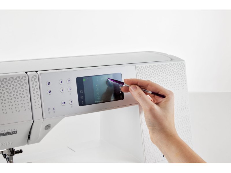 Mit dieser Maschine können Sie eigene Stichkombinationen erstellen, die Stichbreite stufenlos bis zu 9 mm einstellen oder einen sanften Übergang der Stichbreite vom breitesten Anfang zum schmalsten Ende oder umgekehrt programmieren – mit unterschiedlichen Winkeln für Verjüngung oder Erweiterung des Stichs (Tapering). Die Nähmaschine besticht durch ihr innovatives deutsches Design und bietet eine große Arbeitsfläche für komfortables Nähen größerer Stoffstücke, Patchwork oder Quilts. Das übersichtliche und praktische Display zeigt alle notwendigen Informationen und Empfehlungen zu den Einstellungen der Nähmaschine an. Die Maschine kann im Freihandmodus nähen, Stiche spiegeln, automatisch vernähen, die Nadel beim Nähstopp positionieren und vieles mehr. Dank der Sensormatic-Knopflochfunktion näht die Nähmaschine auf jedem Stoff professionell aussehende Knopflöcher. Beide Seiten des Knopflochs werden in die gleiche Richtung und mit der exakt gleichen Länge genäht, sodass beide Seiten absolut identisch sind.