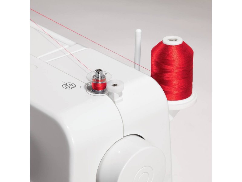 Die Singer Promise 1408 Nähmaschine ist eine mechanische Heimnähmaschine für gelegentliches Heimnähen von leichten bis mittelschweren Stoffen. Die Nähmaschine ist mit 8 Grundsticharten, einem Freiarm, 4-Stufen-Knopflochnähen und einem schwingenden CB-Greifer ausgestattet.